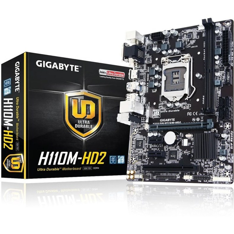 کمپانی گیگابایت یکی از بزرگترین و معتبرترین تولیدکنندگان قطعات کامپیوتر می باشد. مادربرد GA-H110M-HD2 یکی از تولیدات این شرکت بوده که در میان کاربران از محبوبیت خاصی برخوردار است. این مادربرد با سوکت LGA 1151 که دارد می تواند نسل 6 و 7 از سری پردازنده های اینتل را پشتیبانی کند. رم قابل استفاده در مادربرد گیگابایت مدل GA-H110M-HD2 از نوع DDR4 بوده و تا 32 گیگابایت حافظه رم را پشتیبانی می کند. همچنین رم های تا فرکانس 2400 مگاهرتز در این مادربرد قابل استفاده است.