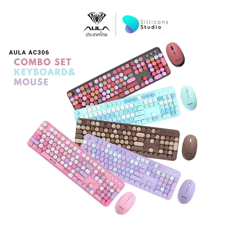 کیبورد و ماوس بی سیم آولا مدل AULA AC306 صورتی